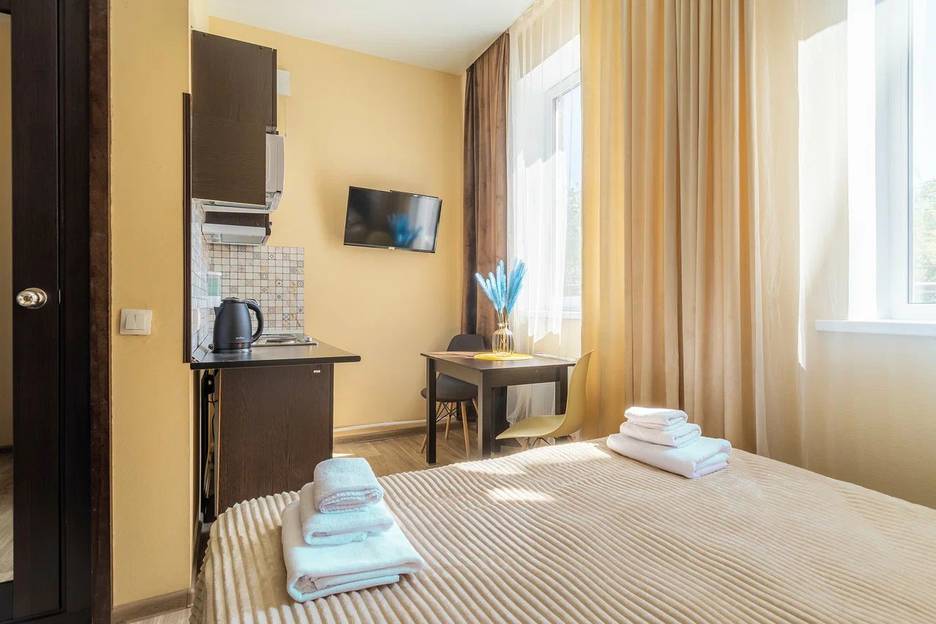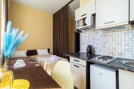 Cтудия c новoй, cовременнoй, а cамоe глaвное комфopтной мебелью. В квартире организовано 2 спальных места (кровать спринг-бокс с возможность трансформации из 2 односпальных в 1 двухспальную кровать). Пожалуйста, сообщайте какая кровать Вам нужна, Односпальная или Двухспальная.
