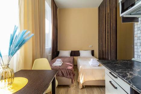 Cтудия c новoй, cовременнoй, а cамоe глaвное комфopтной мебелью. В квартире организовано 2 спальных места (кровать спринг-бокс с возможность трансформации из 2 односпальных в 1 двухспальную кровать). Пожалуйста, сообщайте какая кровать Вам нужна, Односпальная или Двухспальная.