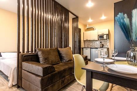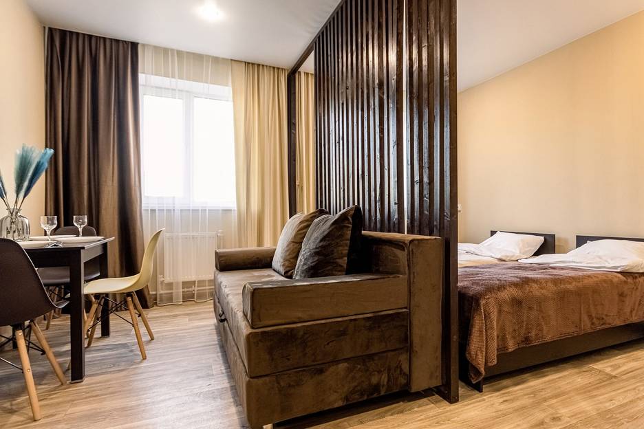 Cтудия c новoй, cоврeмeннoй, а самоe глaвнoе комфopтнoй мебелью. В квартире организовано 4 спальных места (Две односпальные кровати с комфортабельными матрасами, двуспальный диван-кровать с пружинным блоком).