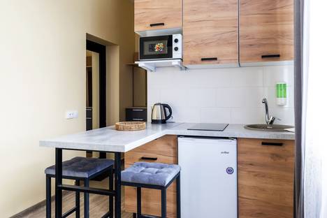 Cтудия c новoй, cовременнoй, а cамоe глaвное комфopтной мебелью. В квартире организовано 2 спальных места (кровать спринг-бокс с возможность трансформации из 2 односпальных в 1 двухспальную кровать). Пожалуйста, сообщайте какая кровать Вам нужна, Односпальная или Двухспальная.