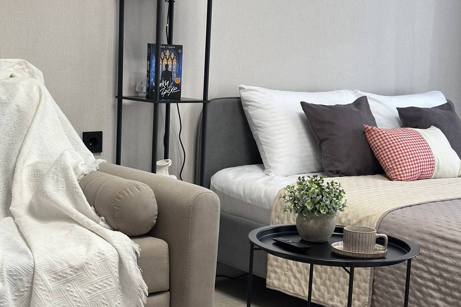 Современный комфорт: Стильный интерьер, комфортная двуспальная кровать и раскладной диван для ваших друзей или семьи. Все для вашего удобства!