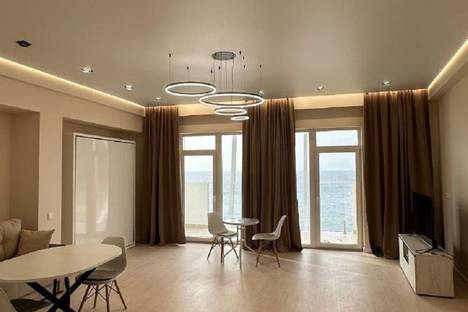 Студия с шикарным видом на море и горы у самой кромки воды в курортном поселка Кастрополь (Южный берег Крыма, в 10км от Алупки, рядом отель Мрия). ЖК Нептун находится в 10метрах от моря!!! Шикарный пляж с мелкой галькой. Пляж малолюдный.
