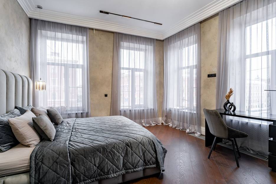 Квартира на Невском 22-24 большая, но не уютная, совсем не выглядит жилой просто место где можно переночевать но не жить, ощущение что нашли свободную мебель и приволокли в квартиру что было)) вся мебель и люстры разных цветов и разных стилей, в ванной смешное пластиковое зеркало, занавески в одной спальне не пойми какие и не было блэкаут из-за этого утром плохо спалось, также окна спален выходили на шумную улицу с открытым окном спать проблемно, а с закрытым душно ибо кондиционер был только в одной спальне. Действительность не совпадает с фото, в реальности не было ковров, зеркала во весь рост в спальне, часов, ваз, полы и двери скрипят).В Петербурге не первый раз, но впервые столкнулись с тем что нужно платить за уборку при выселении это 4500 р. при этом должны сами помыть посуду и вынести мусор, ну ок обычно всегда сами это и делаем при выезде, но как бы везде уборка включена в стоимость аренды квартиры.Не рекомендую, менеджеры придумывают как хотят, не факт что вас заселят туда куда вы бронируете и еще и нервы помотают, да и по факту получается дешевле снять отель с завтраками и уборкой.