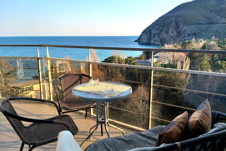Уютная 2-комнатная квартира в 50 метрах от моря с впечатляющим видом на море и гору Аю-Даг (Медведь-гора).