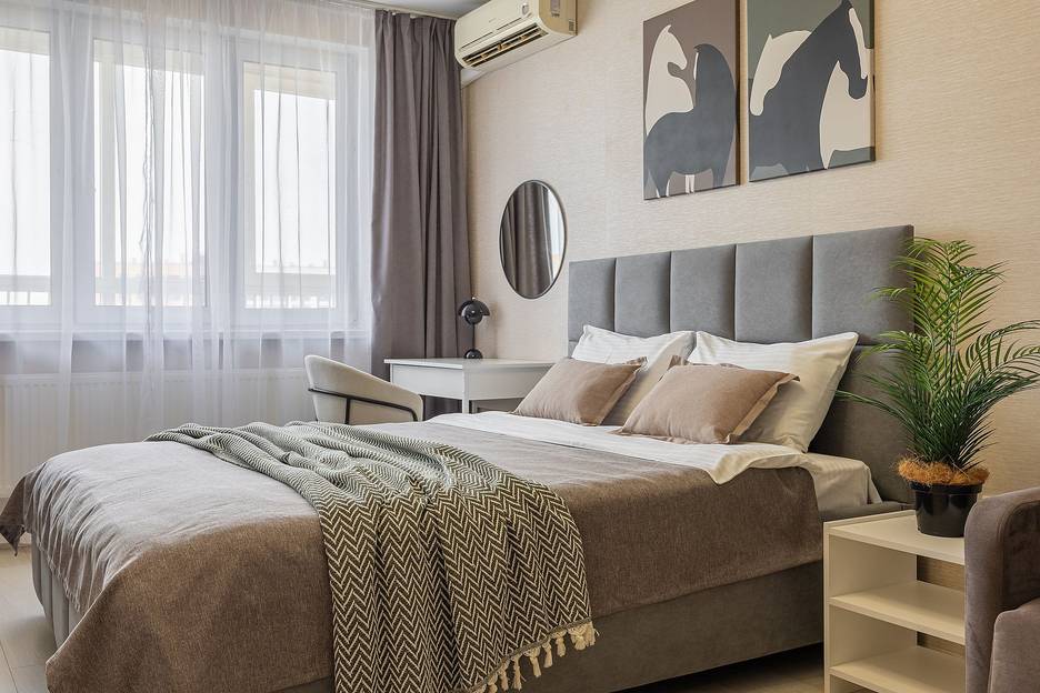✅ В комнате: двуспальная ортопедическая кровать с анатомическим матрасом 160*200 см. , диван-кровать 140 см. Премиальное белоснежное постельное белье, мягкие подушки и воздушные одеяла, полотенца. Кондиционер, Смарт ТВ, Wi-Fi