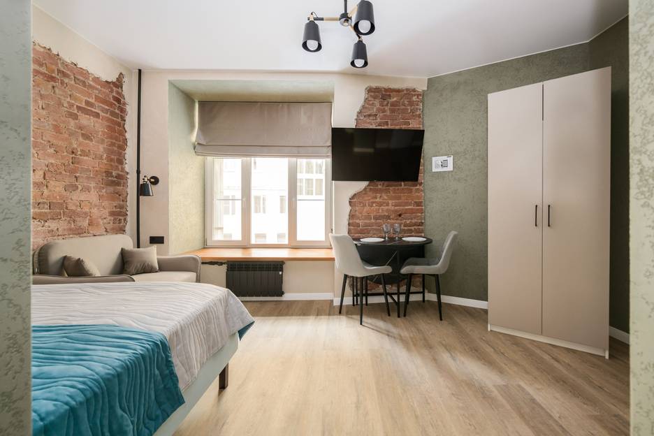 Комфорт и современные удобства: В студии 3 спальных места: двухспальная кровать (180х200) и раскладное кресло (90 х200). Телевизор для вечернего досуга