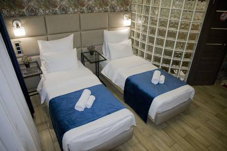Двухместный дизайнерский номер с одной двуспальной кроватью шириной 160см или двумя односпальными кроватями шириной 80см на выбор Гостя. В номере кондиционер, телевизор, санузел, теплые полы, ортопедический матрац, одноразовые гигиенические принадлежности, халаты, бесплатный зерновой кофе и чай.