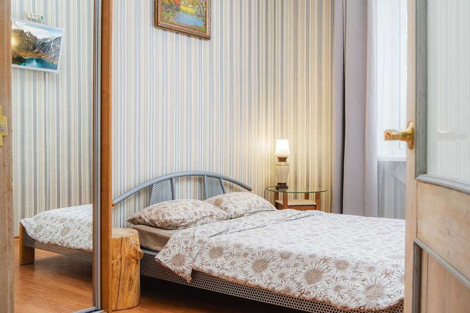 Квартира соответствует описанию. Сталинская постройка с высокими потолками. Очень удобное расположение в шаговой доступности центр города и метро. Рядом продуктовые магазины и Комаровский рынок. Заселение бесконтактное прошло без проблем. Для большой компании удобно наличия двух санузлов. Из небольших недостатков хотелось бы отметить сильную изношенность кухонной посуды, отсутствие полотенец для рук. Хозяин квартиры контактный, быстро выходит на связь. Общее впечатление приятное, рекомендую.