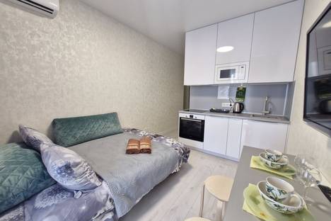 В апартаментах есть все необходимое для проживания 2 человек: двуспальный диван с ортопедическим матрацем, постельные принадлежности, посуда, микроволновка, посудомоечная машина, кондиционер, большой холодильник, плита, посуда, чайник, тапочки. В ванной есть стиральная машина, туалетные принадлежности, полотенца. Большие зеркала в полный рост.