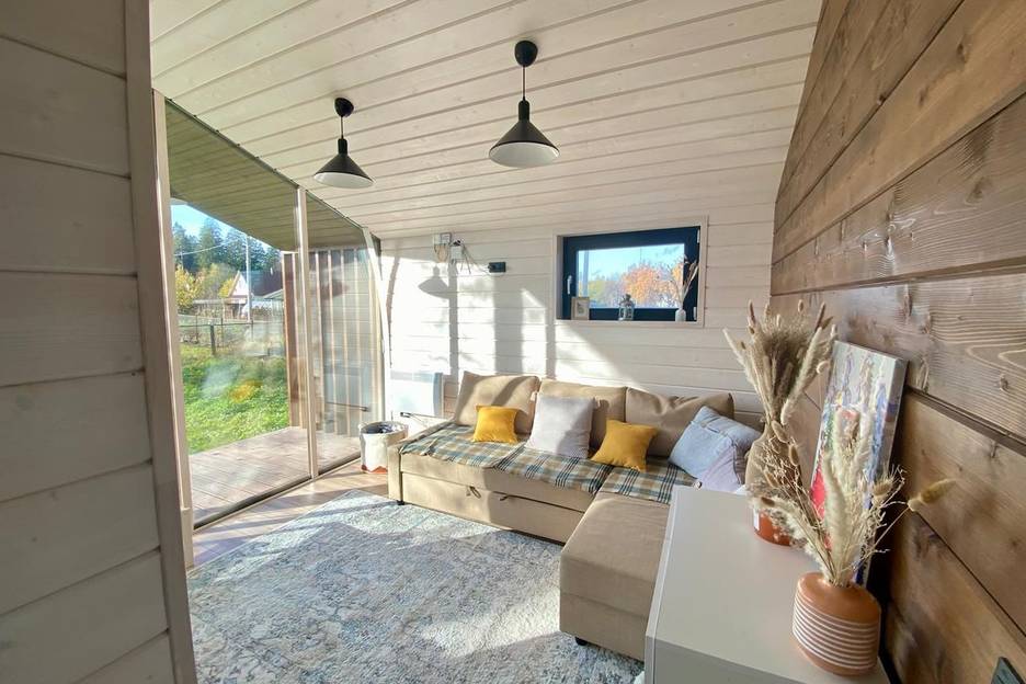 В доме две изолированные спальни, кухня-гостиная и совмещенный санузел с душем.