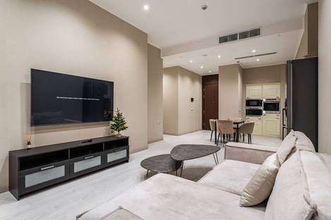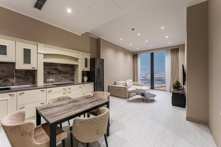 Apartments Расположен на 20 этаже комплекса "Neva Towers". Система Климат-контроля, бесплатный Wi-Fi! В проживание включено: клининг, смена постельного белья, полотенец и банных принадлежностей, тапочки, средства личной гигиены. Внимание уделено всем мелочам для комфортного пребывания вас и ваших гостей. Спальных мест 4. Поздний выезд по договоренности - необходимо согласовать заранее.