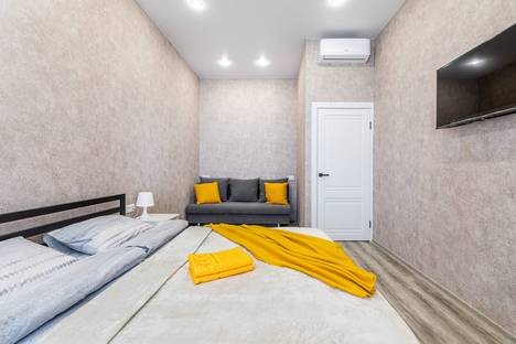 Внутри квартиры вы найдете просторную гостиную с мягким диваном для отдыха после насыщенного дня, полностью оборудованную кухню с бытовой техникой и посудой для приготовления любых блюд на свой вкус. Уютная спальня с удобной кроватью, одеяла и постельные комплекты предоставляются на каждого гостя,мягкими подушками и теплым одеялом гарантирует комфортный сон. Ванная комната оснащена всем необходимым, полотенца также предоставляются каждому гостю. К вашим услугам бесплатный Wi-Fi и кабельное телевидение.