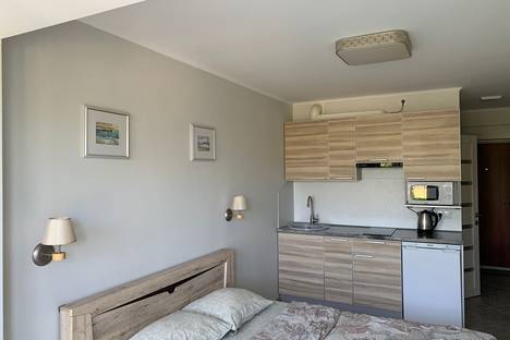 В студиях есть все необходимое для комфортного проживания. Двуспальная кровать, кондиционер, фен, утюг, интернет, плита, микроволновка, холодильник, чайник, набор посуды, стиральная машина, постельное белье, полотенца.