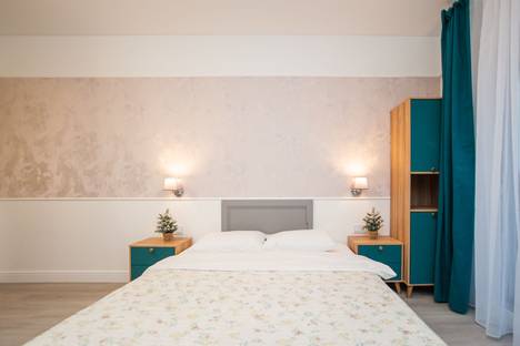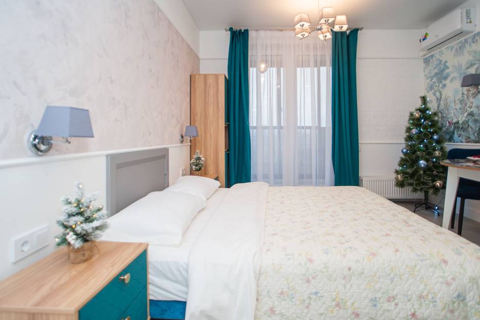 Большая мягкая кровать с белоснежным постельным бельём - для вашего безмятежного сна. Напротив кровати расположен телевизор: вечером вы сможете расслабиться за просмотром любимых фильмов или сериалов, не покидая тёплую постель.