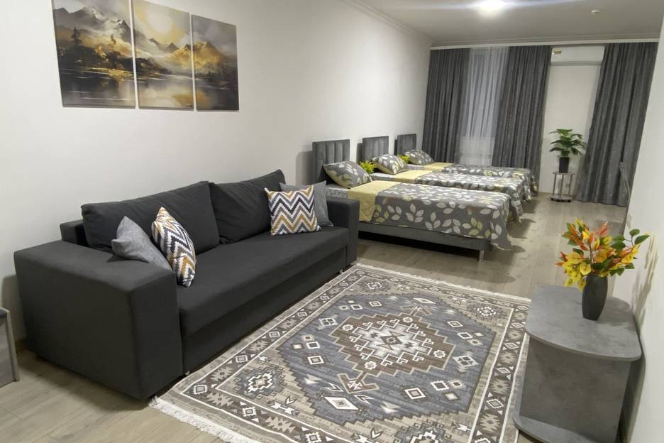 В 5-ти минутах езды от центра Грозного - уютная студия с большой площадью и со всеми условиями для комфортного проживания. В шаговой доступности имеется несколько продуктовых магазинов и базарчик, кафе и столовая и мн.др. Дорога от аэропорта занимает 15 минут.