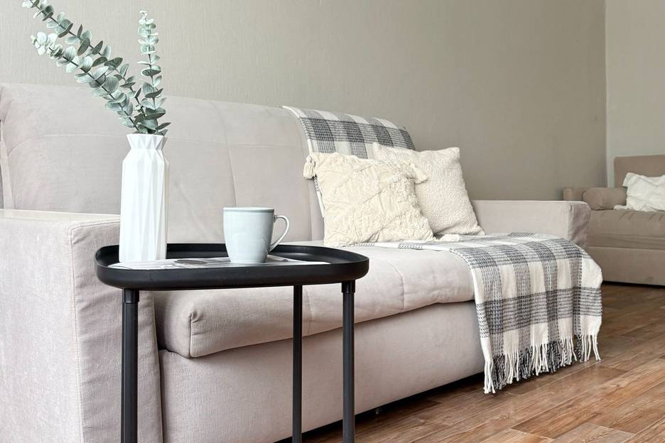 В квартире есть все необходимое для комфортного проживания: холодильник, телевизор, электрический чайник, утюг, микроволновая печь, стиральная машина автомат, посуда, чистое постельное бельё, полотенца, ТВ, бесплатный WiFi. Имеется 4 спальных места: двуспальная кровать, 2 дивана и односпальная кровать.