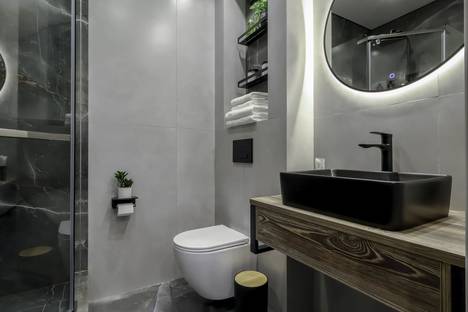 Чисто, есть все удобства, арендодатель позаботилась о всём (по типу чая, кофе, зубной пасты одноразовой и щёток, полотенец, сразу одетого белья на кроватку, бумага туалетная, порошок для стирки). В холодильнике есть платные продукты, единственный минус это дороговизна этих перекусов, в 2-2.5 раза наценка, буквально снизу дома(в доме) находится магазин с точно такими же продуктами 😁 Удобная система с кодом на двери. Очень классное зеркало и душ