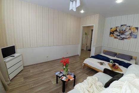 В вашем распоряжении комната, кухня и лоджия. Двуспальная кровать, раскладной диван и шторы блэкаут гарантируют спокойный отдых.