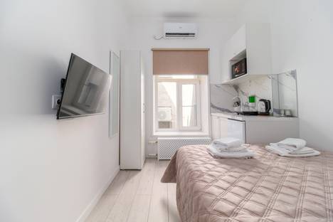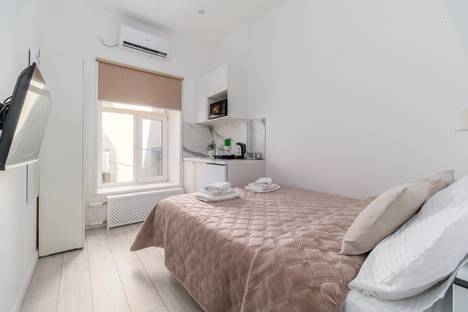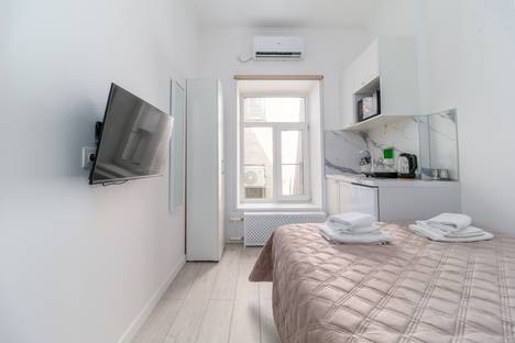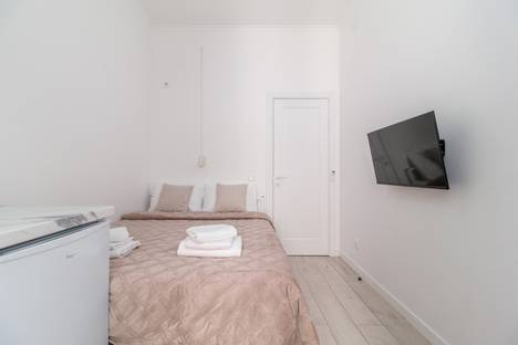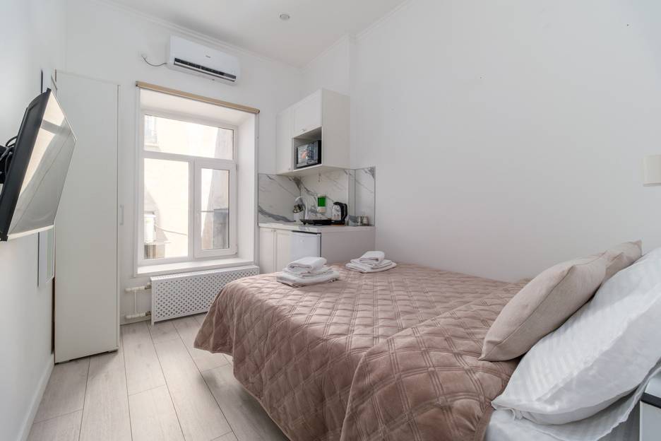 Небольшие апартаменты для двух гостей в историческом центре города. В апартаментах расположена двуспальная кровать с ортопедическим матрасом, также для наших гостей бесплатный wi-fi, жк-телевизор с множеством каналов, кухонная зона с раковиной, холодильником, микроволновой печью и электрическим чайником. Рядом с номером (общая зона в холле на два номера) находится персональный санузел(с ключом) только для Вашего номера с душевой кабинкой, стиральная машина. Всем гостям предоставляется чистое бельё и полотенца. Вид из окна на двор-колодец (напротив стена). Также хотим отметить, что лифта в доме нет, поэтому просим учитывать это обстоятельство при бронировании.