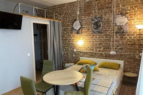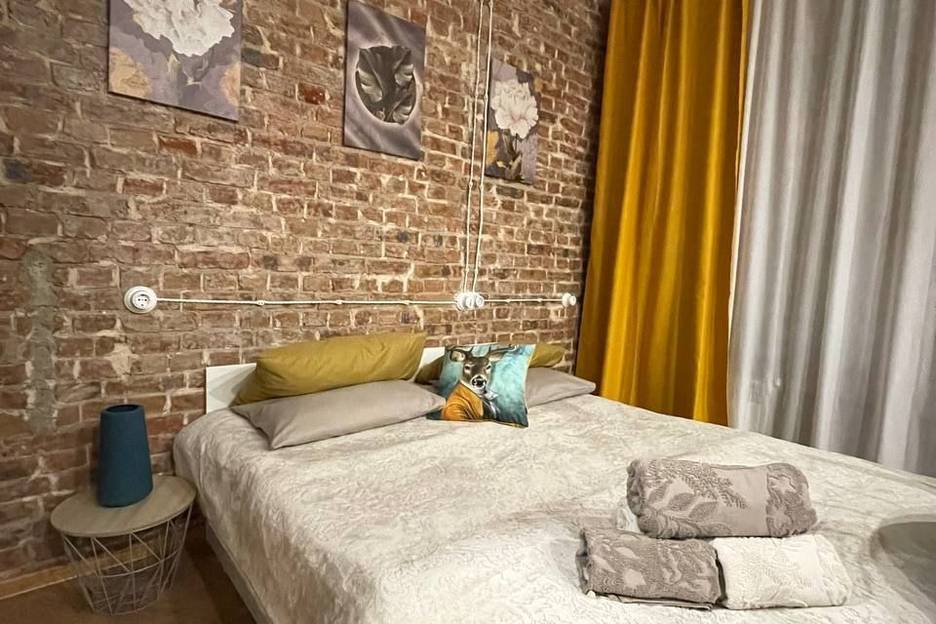 В студии продумана каждая мелочь. Шикарная двуспальная кровать (1500x2000) застелена свежим бельем, а для компании есть дополнительное место на втором ярусе. Просторно, светло, есть большой ЖК-телевизор и быстрый Wi-Fi.