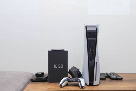 Гостиная с диваном, телевизором, проектором журнальным столиком + PS5
