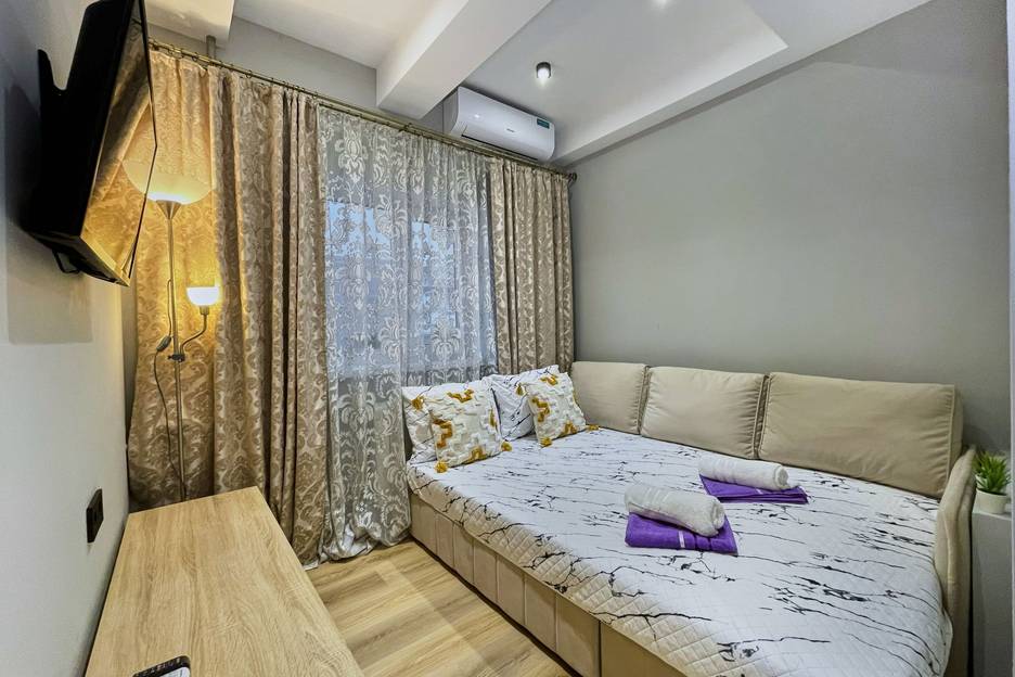 3 звёзды за то, что в эту квартиру мы не попали, хотя и бронировали ее, и за день до заселения нам подтвердили нашу бронь. А сейчас по порядку. Прямо перед заселением у подъзда менеджер по телефону нам сообщил, что эта квартира не сдается в данный момент и предложил нам другую равнозначную, находящуюся благо рядом на соседней улице, в 200 метрах. Это был шок, но нам намекнули, что лучше заселиться во вновь предложенную, чем в ту, которую мы бронировали. Судя по другим отзывам в той, которую мы бронировали не все в порядке с санитарным состоянием, были отзывы и про тараканов. Возможно, нам не захотели ее сдавать и предложили вариант получше. В предложенной квартире в принципе все неплохо, белье и полотенца чистые, посуда и все необходимое для временного пребывания было. Единственное потек кран в ванной, но оперативно его заменили. Конечно, по углам, за дверями пыль присутствовала, но общее состояние довольно неплохое. Даже фен был новый. Квартира теплая, тараканов не было замечено, поэтому за эту квартиру можно с натяжкой 5 звёзд поставить. А вот за обратную связь, а именно за то, что не предупредили, что не собираются нас заселять в первоначально забронированную квартиру, за это 1 звезда. Поэтому средняя оценка 3 звезды.