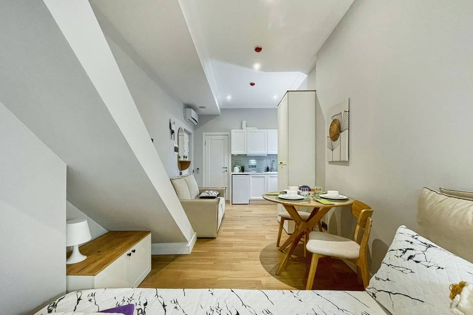 3 звёзды за то, что в эту квартиру мы не попали, хотя и бронировали ее, и за день до заселения нам подтвердили нашу бронь. А сейчас по порядку. Прямо перед заселением у подъзда менеджер по телефону нам сообщил, что эта квартира не сдается в данный момент и предложил нам другую равнозначную, находящуюся благо рядом на соседней улице, в 200 метрах. Это был шок, но нам намекнули, что лучше заселиться во вновь предложенную, чем в ту, которую мы бронировали. Судя по другим отзывам в той, которую мы бронировали не все в порядке с санитарным состоянием, были отзывы и про тараканов. Возможно, нам не захотели ее сдавать и предложили вариант получше. В предложенной квартире в принципе все неплохо, белье и полотенца чистые, посуда и все необходимое для временного пребывания было. Единственное потек кран в ванной, но оперативно его заменили. Конечно, по углам, за дверями пыль присутствовала, но общее состояние довольно неплохое. Даже фен был новый. Квартира теплая, тараканов не было замечено, поэтому за эту квартиру можно с натяжкой 5 звёзд поставить. А вот за обратную связь, а именно за то, что не предупредили, что не собираются нас заселять в первоначально забронированную квартиру, за это 1 звезда. Поэтому средняя оценка 3 звезды.