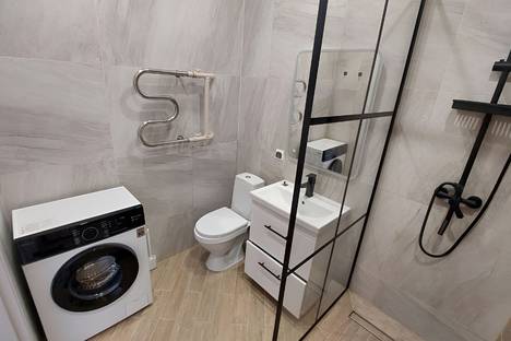 С раздельным сан.узлом, фен, стиральной машиной, утюг, гладильная доска, сушилка для белья.