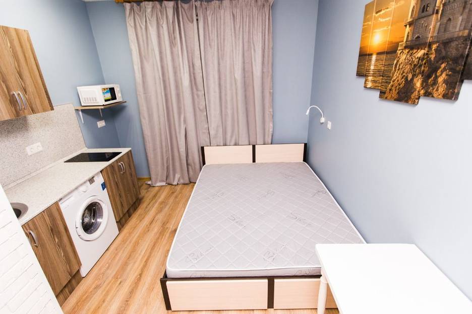 Студия полностью оборудована для комфортного проживания: телевизор, бесплатный Wi-Fi, стиральная машина, утюг, фен, варочная панель, чайник и микроволновка. Регулярная уборка профессиональной химией и дезинфекция от насекомых, а также смена белья на чистое и свежее проводятся перед каждым заездом.