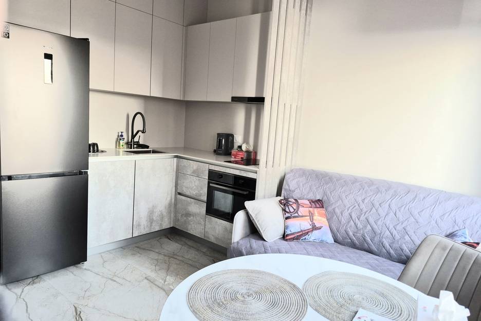Квартира - евродвушка с лоджией площадью 40 метров расположена в новом Жк бизнес-класса НОВАТОРИЯ с приватной закрытой территорией.