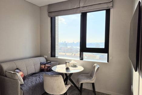 Уютная студия с шикарным видом на бухту Золотой рог и мост, также видно мост на остров Русский. Месторасположение очень удобное для туристов, всё в шаговой доступности: и пляж, и достопримечательности, и рестораны.