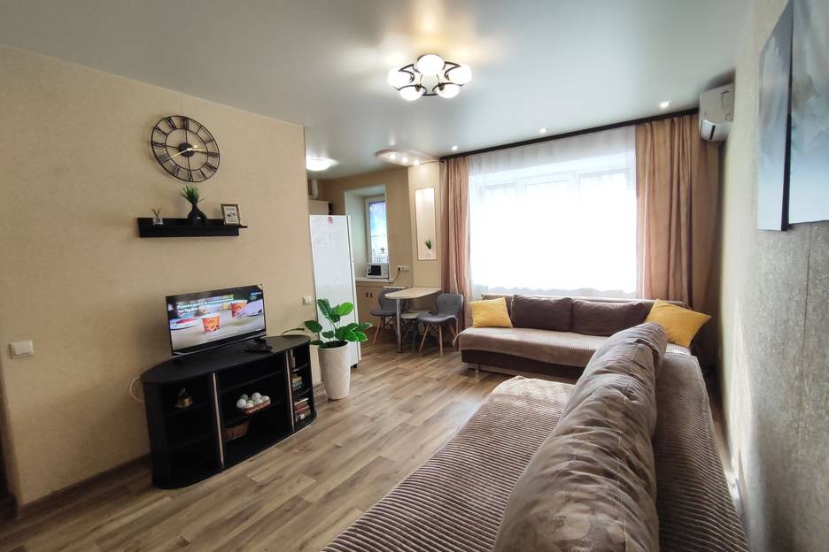 Изначально поразило очень уставшее состояние квартиры, ремонт в санузле примерно 80-х годов... Потом успокоило то, что всё необходимое в квартире есть и фен, и утюг, и микроволновка, и плита, и хололильник, и телевизор, и Wi-Fi, и бойлер, который как раз очень пригодился, так как отключили отопление и вода из горячего крана текла комнатной температуры. Есть и стиральная машина, которая почему-то не работает ни на одном режиме, требующем хоть какого-то нагрева воды... Только полоскание холодной водой и отжим. Даже до 30° не греет... Судя по состоянию постельного белья и полотенец их "стирают" таким способом без использования средств для стирки (их в квартире нет вообще). Белье от предыдущих жильцов сушится тут же на балконе и запаха стиранного белья не имеет от слова совсем... Предложенное для использования белье никто не гладит... И это уже ваш выбор: пользоваться по сути нестиранным, а лишь выполосканным бельем, либо потратить значительное время на то, чтобы его хотя бы прогладить.... Место расположения квартиры меня очень устраивало и приходила я туда только ночевать - это и сгладило первоначальное впечатление... И ещё на сайте kvartirka.com указано, что заезд в 12:00, а выезд в 10:00, но по факту оказалось, что это неверная информация. На самом деле заезд в 14:00, а выезд в 12:00. Для меня это было неприятным сюрпризом уже по прибытии.