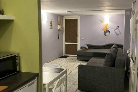 Комфортабельный и уютный номер-студия максимальной вместимостью до 3 гостей представляет собой пространство, функционально грамотно спланированное на зону кухни и спальные места в виде раскладного большого двуспального дивана и односпальной тахты. Имеется все необходимое - душ, туалет, чайник, плита, микроволновая печь, холодильник, телевизор, WI-FI, посуда, столовые приборы, постельное белье, полотенца, фен. На этаже - питьевая вода, чай, сахар. В распоряжении гостей всех номеров - уютная крытая терраса с видом на город.