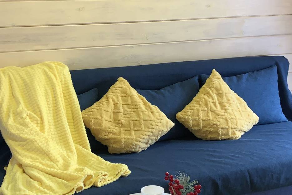 В доме одна спальня с большой двухспальной кроватью ( 180*200см единый матрас + топпер 6см).Диван 130*180