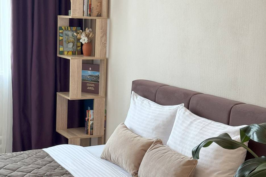 Чистое отпаренное постельное белье, кровать и ортопедический матрас Аскона, блэкаут жалюзи будут беречь Ваш сон. Завтрак на лоджии с видом на Волгу зарядит энергией на весь день. Теплый свет, мягкий плед, книга или ТВ экран создадут уютное вечернее настроение.