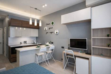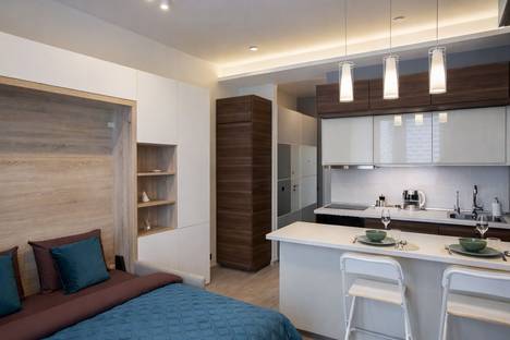 Студия 20 м² на 18 этаже — комфортно для проживания 1–2 гостей.
