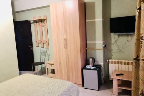 Имеется телевизор, кондиционер, отопление, шкаф, вешалка, журнальный стол, стулья, чайник, холодильник.
