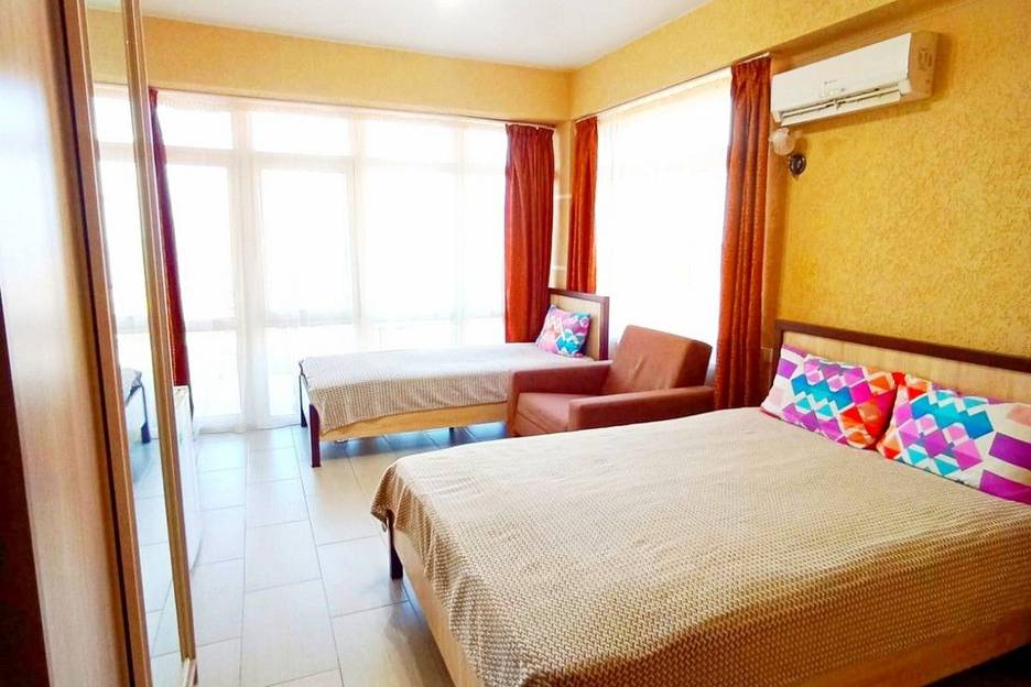 Комфорт Четырёхместный площадью 20 кв.м с балконом, видом на море и горы и с отдельным входом.