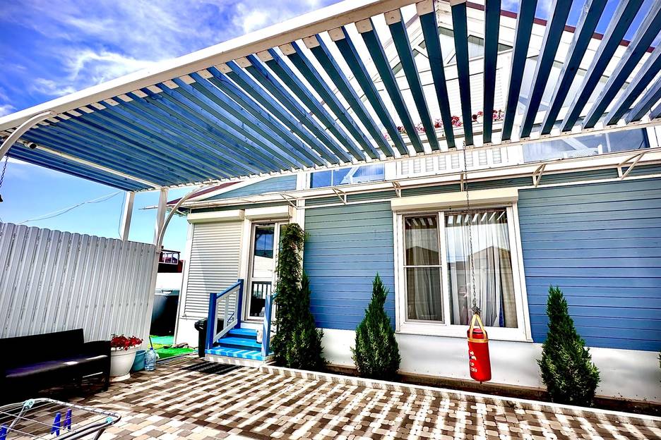 На берегу Азовского моря сдается коттедж со всеми удобствами для отдыха. ✅На территории имеется отдельная парковка свой двор веранда ,две спальни с балконами . Двор имеет два выхода один выход на бассейн другой выход и выезд автомобиля на улицу., ✅санузел на втором этаже, на первом этаже находится санузел с душевой кабинкой каждого гостя выдается два полотенца.✅ фен .✅гостиная и кухня полностью оборудованная микроволновка холодильник ,кулер ,телевизор, всё необходимое для приготовления пищи. На отдельной территории находится бассейн пять на 10 метров . Бассейн рассчитан на три коттеджа .мангал льная зона ,игровая площадка.,теннис Расстояние к песчаному пляжу по ровной дороге 5 мин. Согласно правилам предоставления гостиничных услуг в РФ для заселения в гостиницы на территории РФ гражданам России необходимо иметь при себе общегражданский паспорт, лицам, не достигшим 14-летнего возраста — свидетельство о рождении. В случае экстренного отключения электричества на территории находится генератор.
