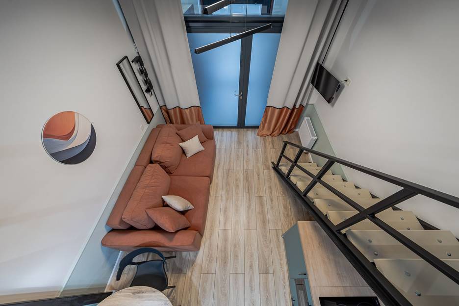 Шикарные апартаменты, чисто, уютно. Очень красивый дров, сами апарты в стиле лофт. Очень понравилось.