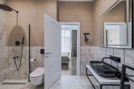 В стильной и светлой ванной комнате вы сможете принять горячий душ, а также освежить свои вещи в стиральной машине.