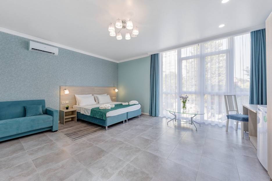 В номере: 1 двуспальная кровать, 1 двуспальный диван, 1 кресло-кровать.