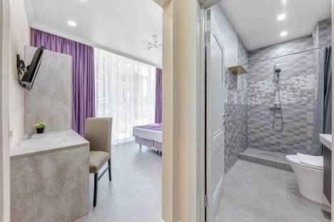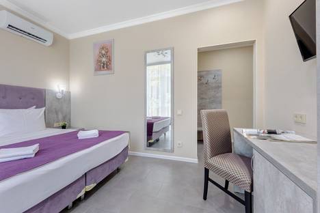 Номер снимали на сутки, за 3500, так как приехали раньше времени , нашли на сайте забронировали. Номер на втором этаже , туалет душ были в номере, общая кухня на улице. В принципе все стандартно. Единственное, попросили женщину типа администратора заселить пораньше, не в обед , а утром так как двое детей в дороге изучались, один маленький ребенок. Уехали мы также при чем рано на следующий день. Нас заселили , однако хозяйка взяла ещё за ранний заезд 500 рублей и получился номер за 4000 . Дороговато для такого номера.