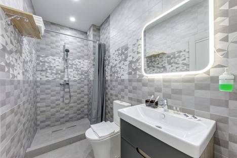 Индивидуальная ванная комната: душ, раковина, туалет.