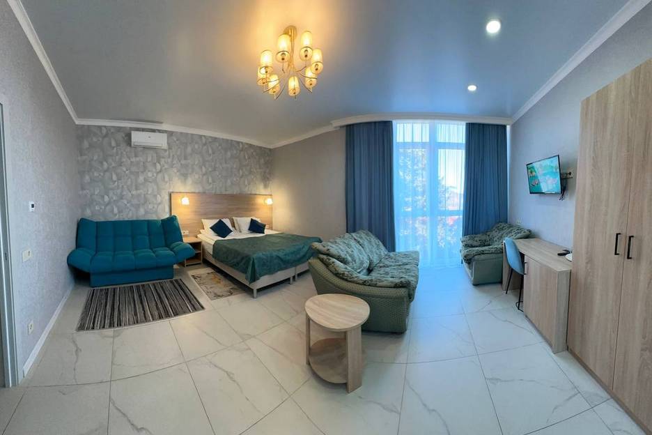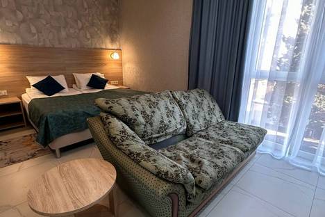 В номере: 1 двуспальная кровать, 2 дивана двуспальных.