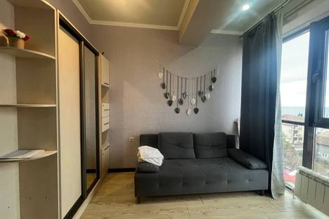 Сдается уютная студия с балконом с красивым видом на море и горы. До моря около 3х минут пешком. В квартире имеется все необходимое для проживания. Возможно проживание как посуточно, так и на длительный срок. 3 спальных места, 1 двухспальная кровать-диван, и кресло-кровать.