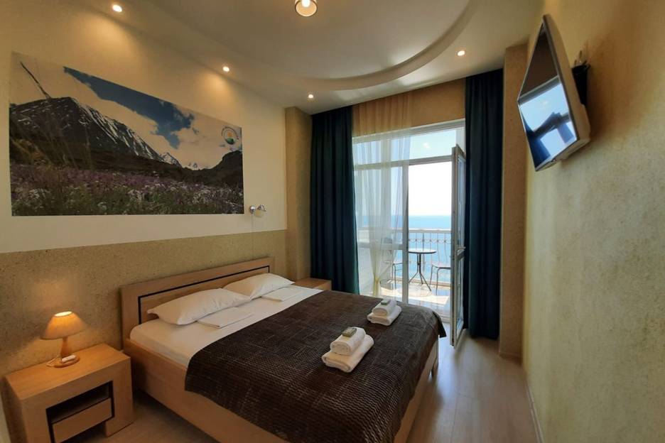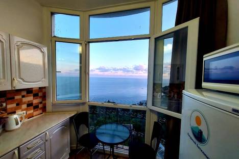 Апартамент "Лазурный Батилиман", с видом на море, возле пляжа "Таврида" в бухте Ласпи, Батилиман. Укомплектован всем необходимым (постельное бельё и полотенца, посуда, плитка, чайник, кондиционер и wi-fi).