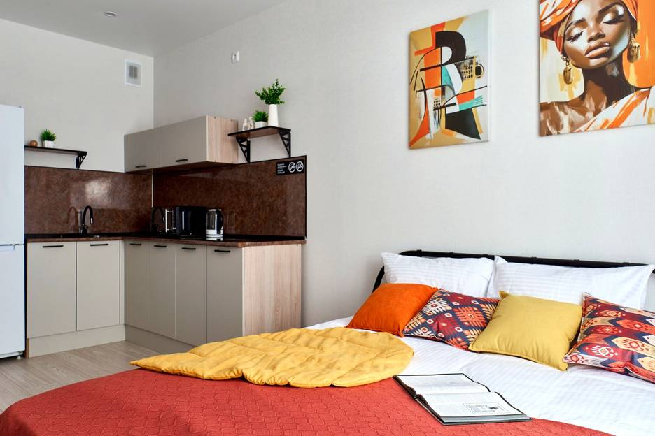 Тёплая и светлая студия премиум-класса с самоваром в новостройке около Баташевского парка.