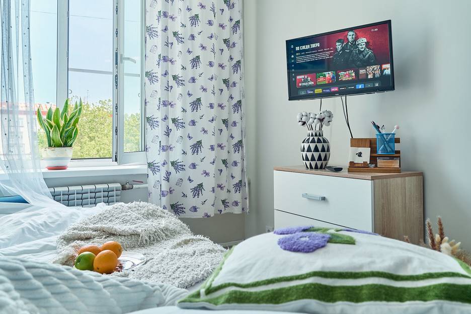 Wi-fi, телевидение смарт-тв, телевизор, кондиционер, стиральная машина, электрическая плита, холодильник, микроволновка, электрочайник, фен, утюг, гладильная доска