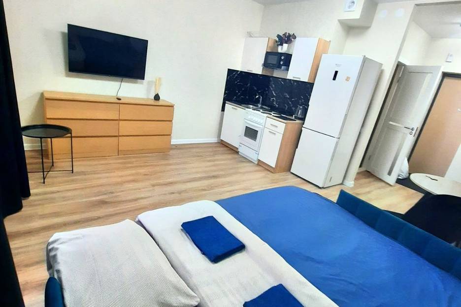 Абсолютно новая студия с балконом для Вашего отдыха. Bместимocть дo 2 гоcтей.